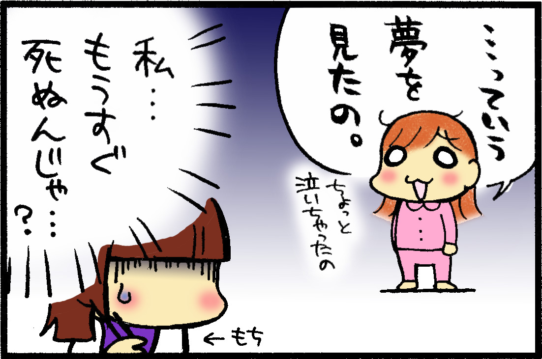 ゆぅが夢の話をしてくれるようになったのも、本当に最近のことでいつもは保育園で遊んでいる夢とか、私や父ちゃんと遊んでいる夢の話ばかりなんですよ。