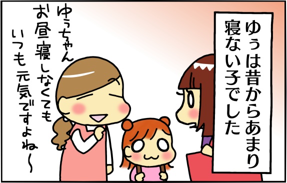 ゆぅは本当に早い時期にお昼寝もしなくなって、夜寝る時間もどんどん遅くなるように…
