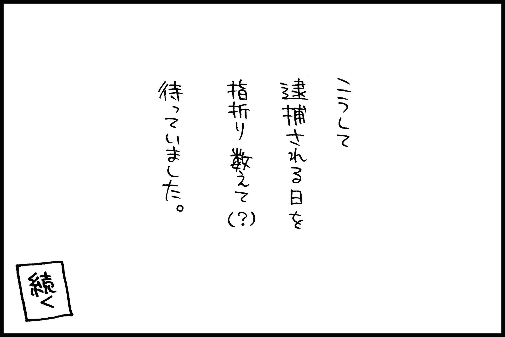逮捕されて欲しい訳じゃないけど、どうせ逮捕されるならスパッと逮捕してもらったほうが精神衛生上はよっぽど良いと思います