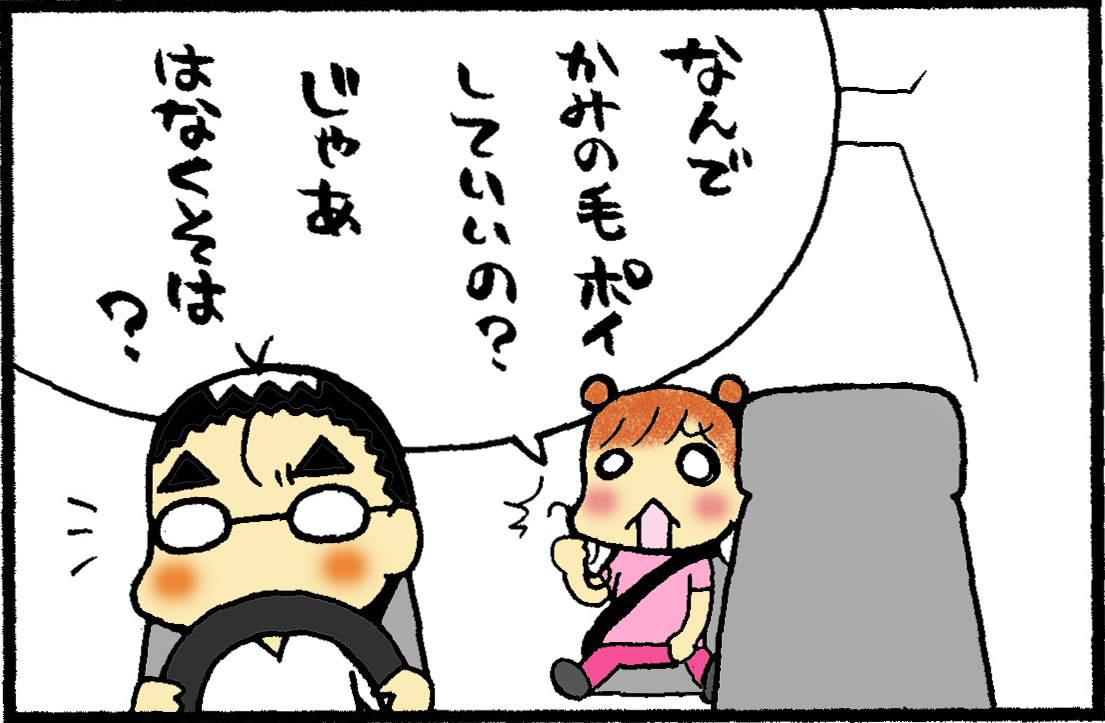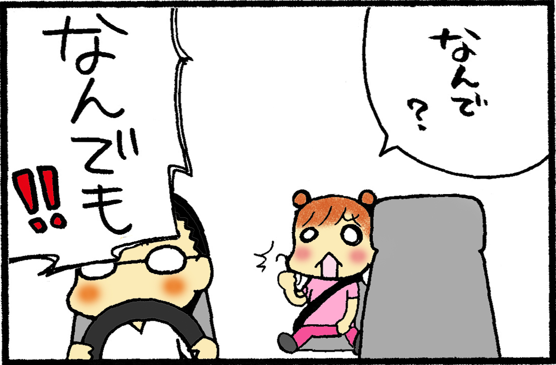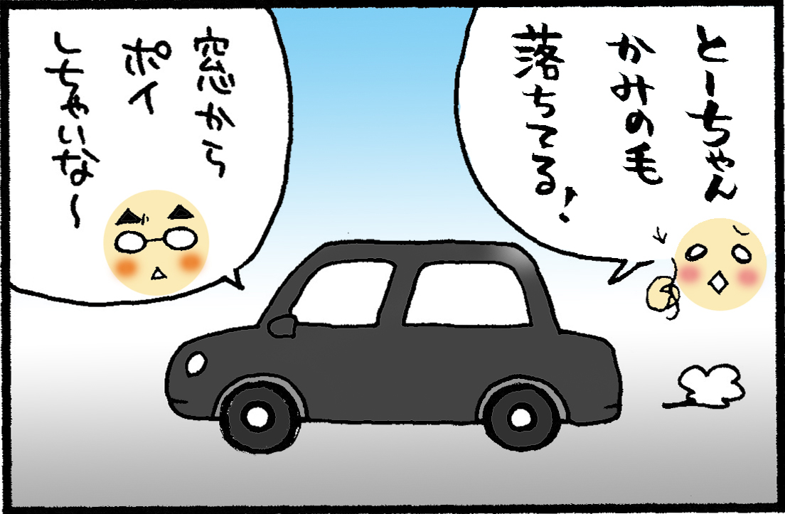 この次の日くらいに家族で車に乗っていて、私がゆぅの鼻くそを取って窓からポイっとしたら…
