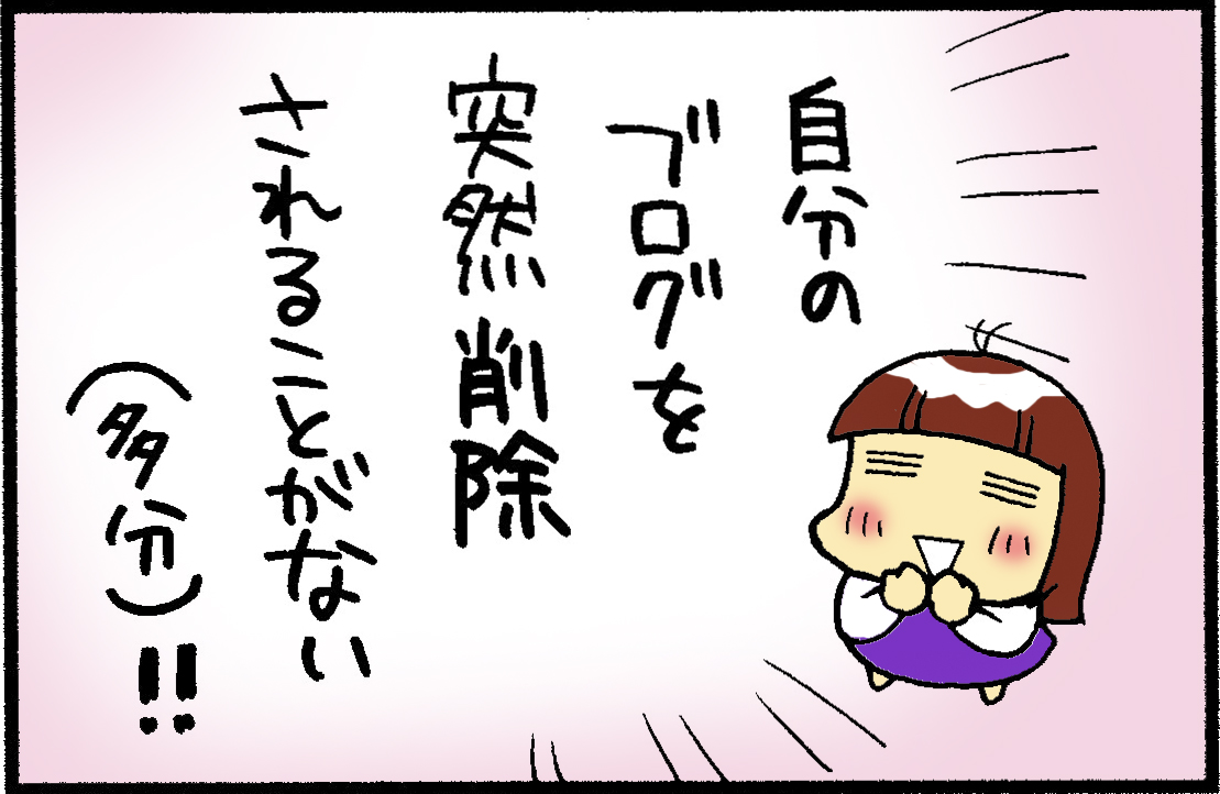 もし、私のブログが消えてしまったりしたら、多分1週間くらいは何もする気が起きないくらいショックを受けると思います
