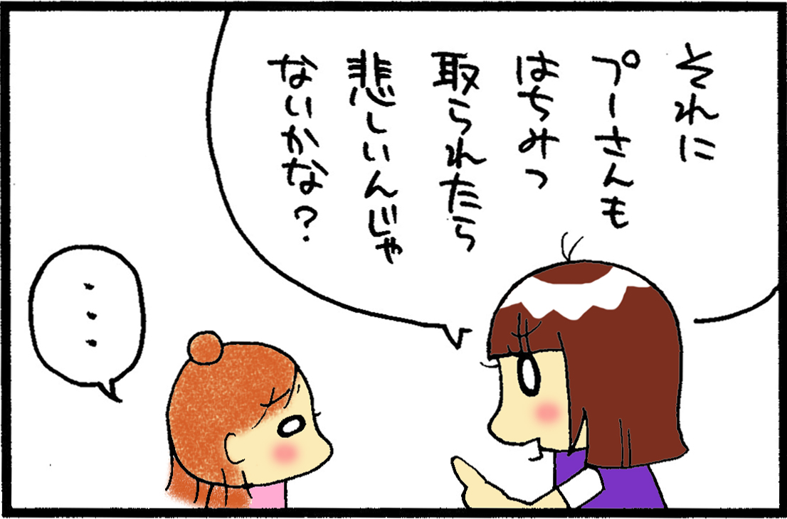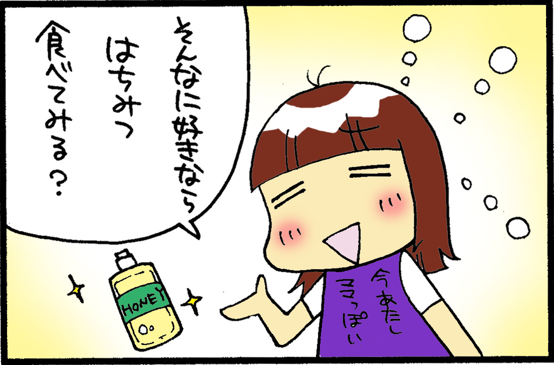 ゆぅの中では「はちみつ=プーさん」なんでしょうけど、家でプーさんとか見ないし私は一瞬意味がわからなかった