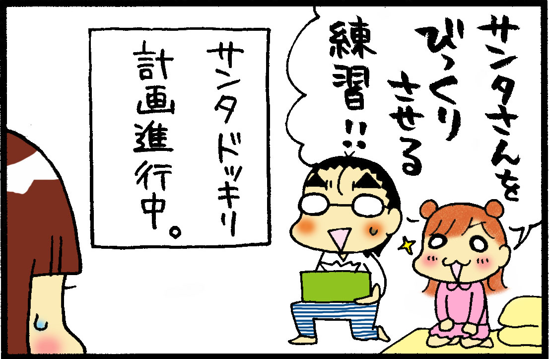 それで、何がどうなったのかゆぅが寝ているときに忍び寄るサンタさんを、驚かすドッキリ計画が進行し出したみたいです
