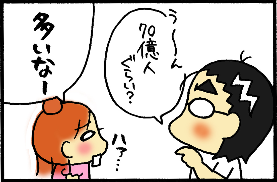 それにしても、今世界の人口って70億もいるんですね(参考HP)。