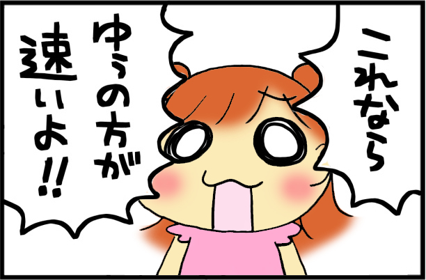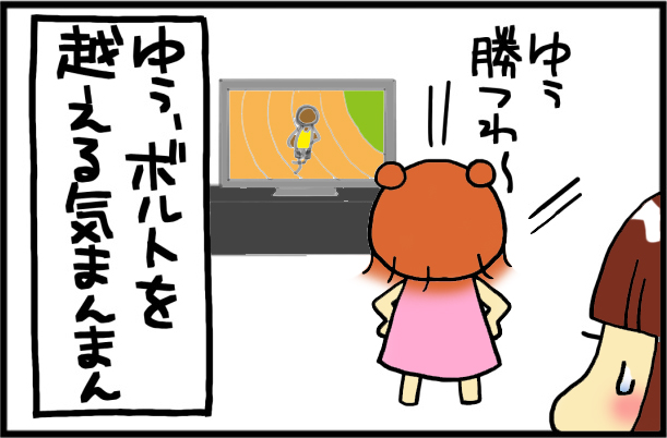 マンガにした「勝てる宣言」は、保育園では魚をしっぽから食べると、足が速くなると教えられているみたいで、ボルトにも勝てると自信満々になっているみたい