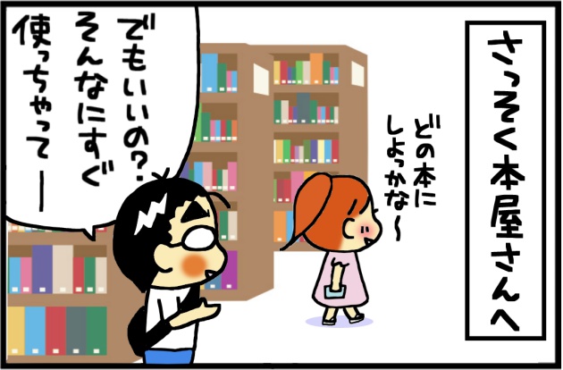 そんな中、図書カードをもらうときに「500円分使えるカードだよ」と言って渡したので、本人は繰り返し使うことが出来る魔法のようなカードを手に入れたと勘違いしたんですね…