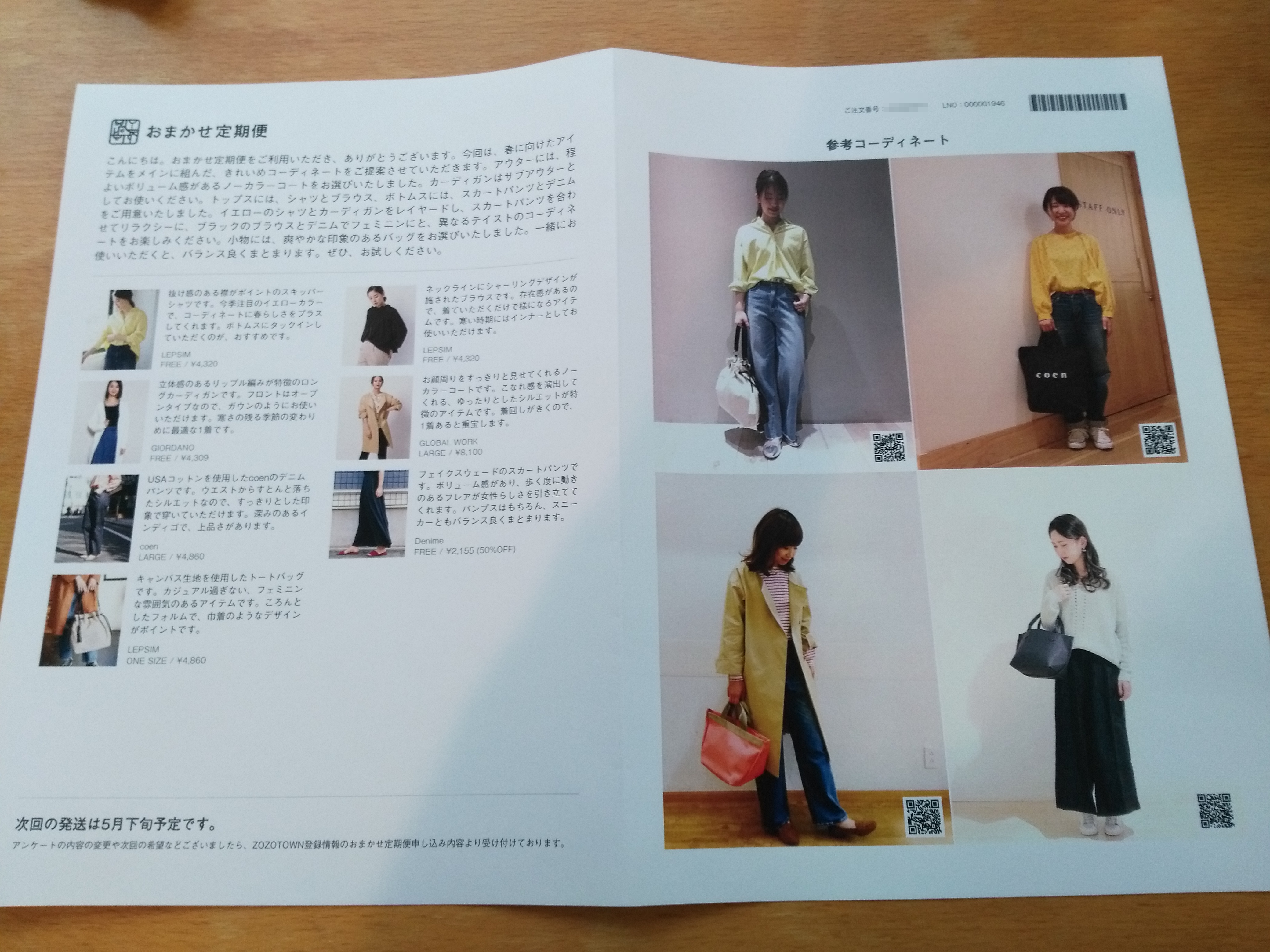 予算を5,000円以内(コートは1万円以内)と低めに設定したので、きちんとしたものが届くか不安だったけど、届いたものはきちんとしたものばかりでした(当たり前)。